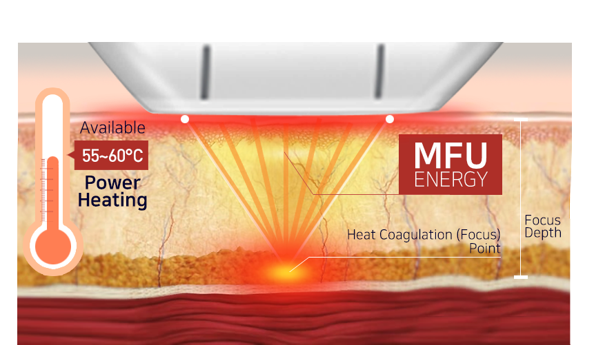 초음파 에너지를 피부 깊숙한 근막층까지 전달애